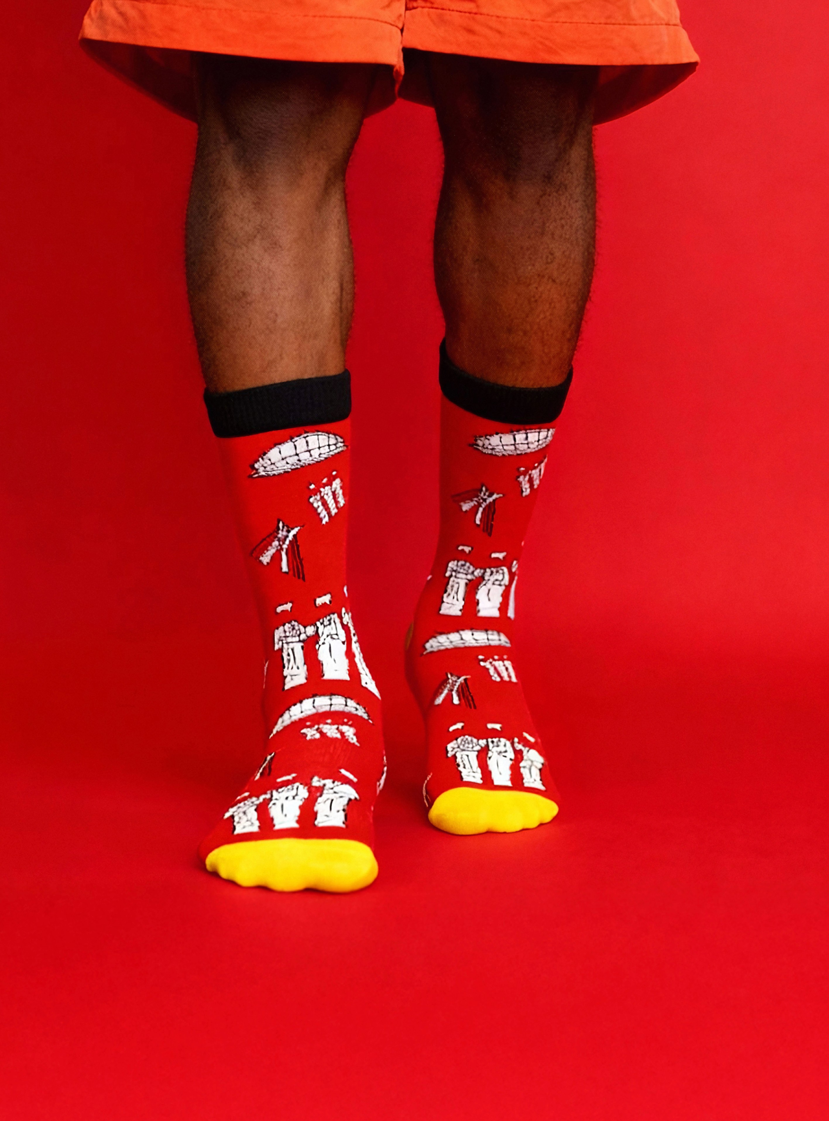 There was a need to look back and celebrate this eroding symbols of culture and the new ones that continue to emerge within the city. This was achieved by designing a sock in a unique, fun and colourful way. Utilising common experiences such as daily commuting with the popular Danfo, citing the Eyo or popular monuments like the Aro Meta or Lekki-Ikoyi link bridge which are all unique and symbolic in their unique way.